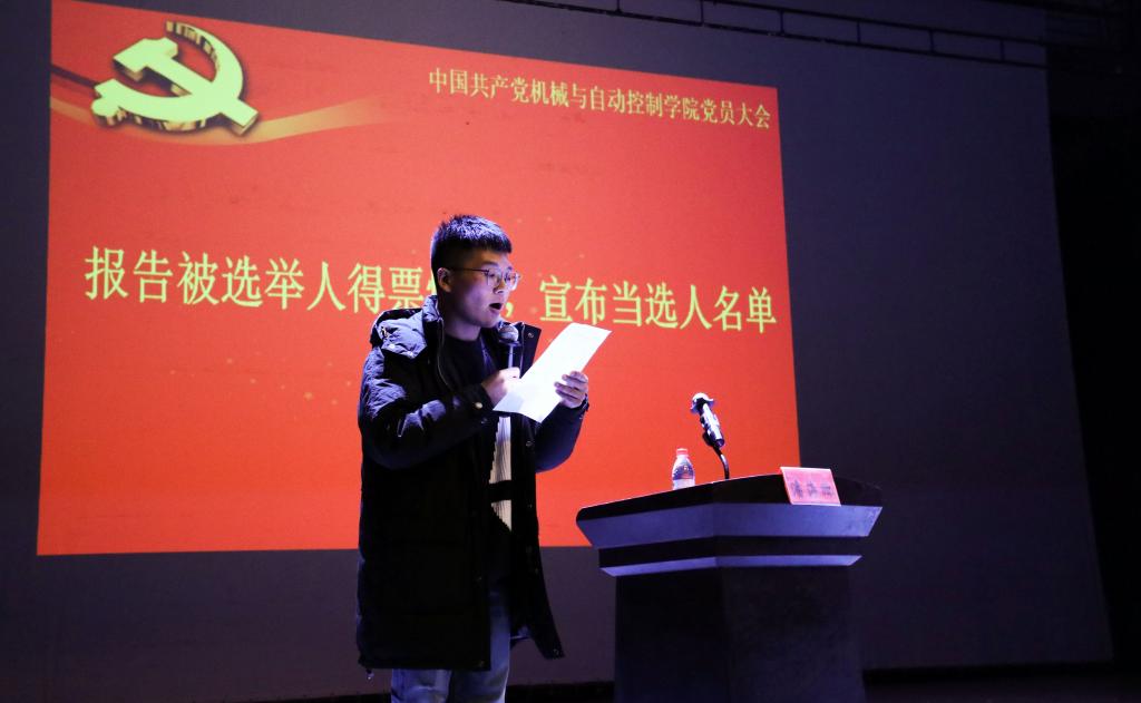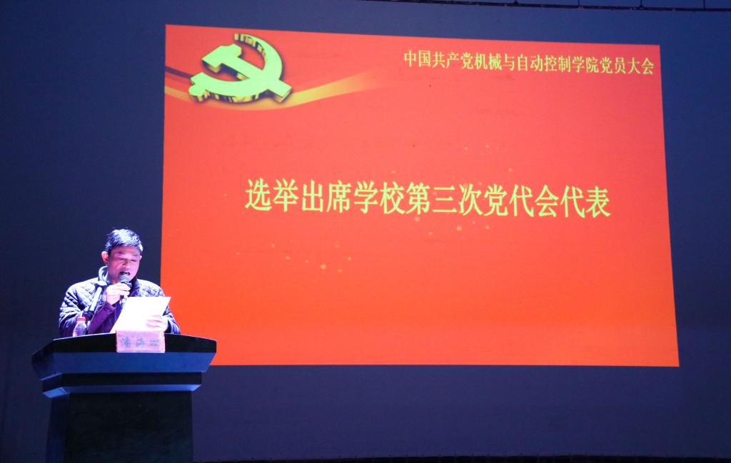 党员大会选举办法》,选举工作监票人、总监票人名单。在介绍学院党代会代表候选人基本情况后,全体参会正式党员进行无记名投票。计票过程中,党员们观看了《我们一起走过——致敬改革开放40周年》纪录片。最终,大会选举产生机械与自动控制学院出席学校第三次党代会代表16名,其中教工14名、学生2名,待上级党委批复。
