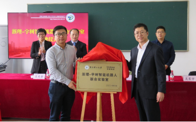 10月29日下午,学院“浙理-宇树智能机器人联合实验室”揭牌仪式在15号楼616实验室举行。2009级机制校友、杭州宇树科技有限公司联合创始人陈立、销售总监苌瑞春,学院党委书记苏志俭、副院长鲁玉军、党委副书记王吴芳及部分师生出席仪式。仪式由副院长吴震宇主持。