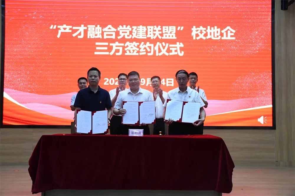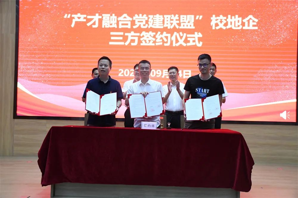 董敢部长与苏志俭书记共同为校地企“产才融合党建联盟”揭牌