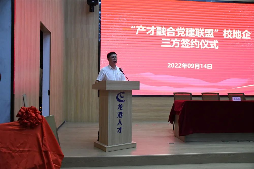 党委祝贺“产才融合党建联盟”校企地三方共建签约仪式顺利进行。并表示坚持党建引领,发挥学校对龙港经济社会发展的智力和科技支持,进一步深化浙江理工大学龙港研究院服务好地方的创新性举措。期待通过搭建平台,发挥政府、学校、企业的各自优势,结出校企地合作硕果。