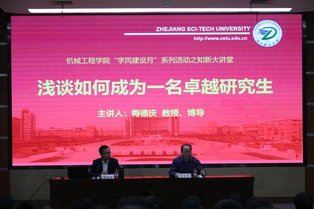 学风建设月之“知新大讲堂”在行政楼二楼报告厅举办。浙江大学海洋学院常务副院长、党委副书记、博士生导师梅德庆教授应邀担任本次主讲人,为现场200余名师生带来了一场题为《勇于创新 精益求精 追求卓越——浅谈如何成为一名卓越研究生》的专题报告。学院副院长鲁玉军、党委副书记陆秋萍参加。